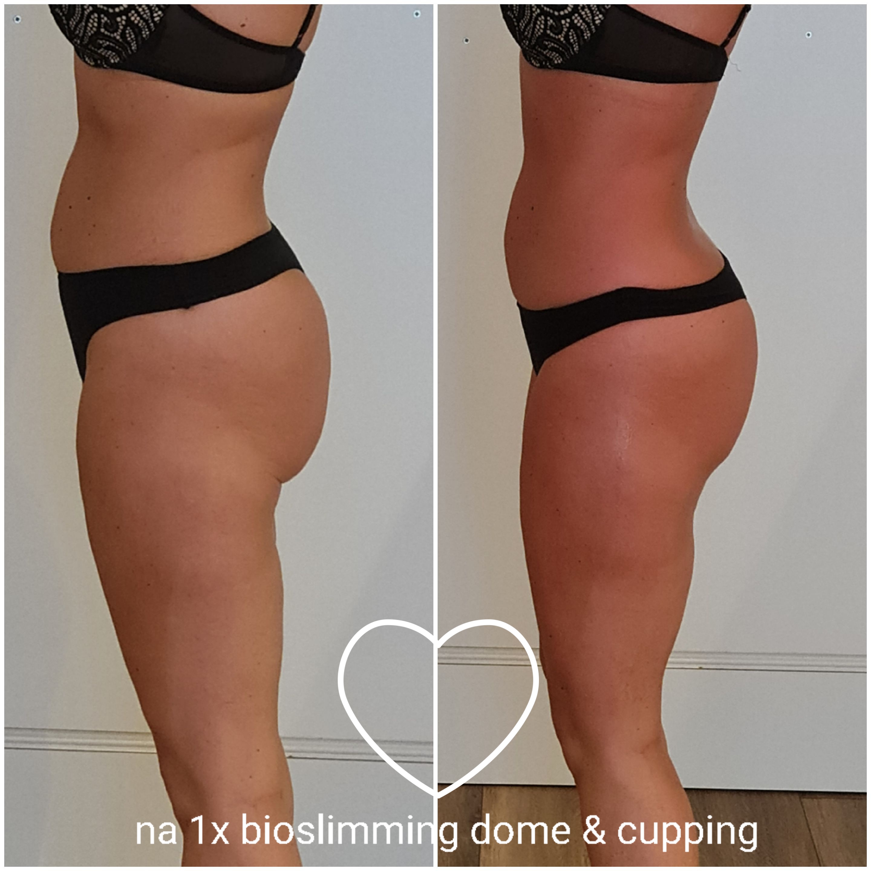 Na de eerste sessie ziet 90% van de gebruikers een zichtbaar verschil. Het resultaat is niet gebaseerd op tijdelijk vochtverlies, maar op werkelijke vetafname. Je kunt tot wel 4 cm per gemeten gebied verliezen zonder zware training of strikte diëten. De combinatie van de Bioslimming behandeling, de Dome Infrarood Booster en Cupping Body Drainer zorgt voor snelle, zichtbare resultaten in probleemgebieden zoals de buik, billen en bovenbenen.